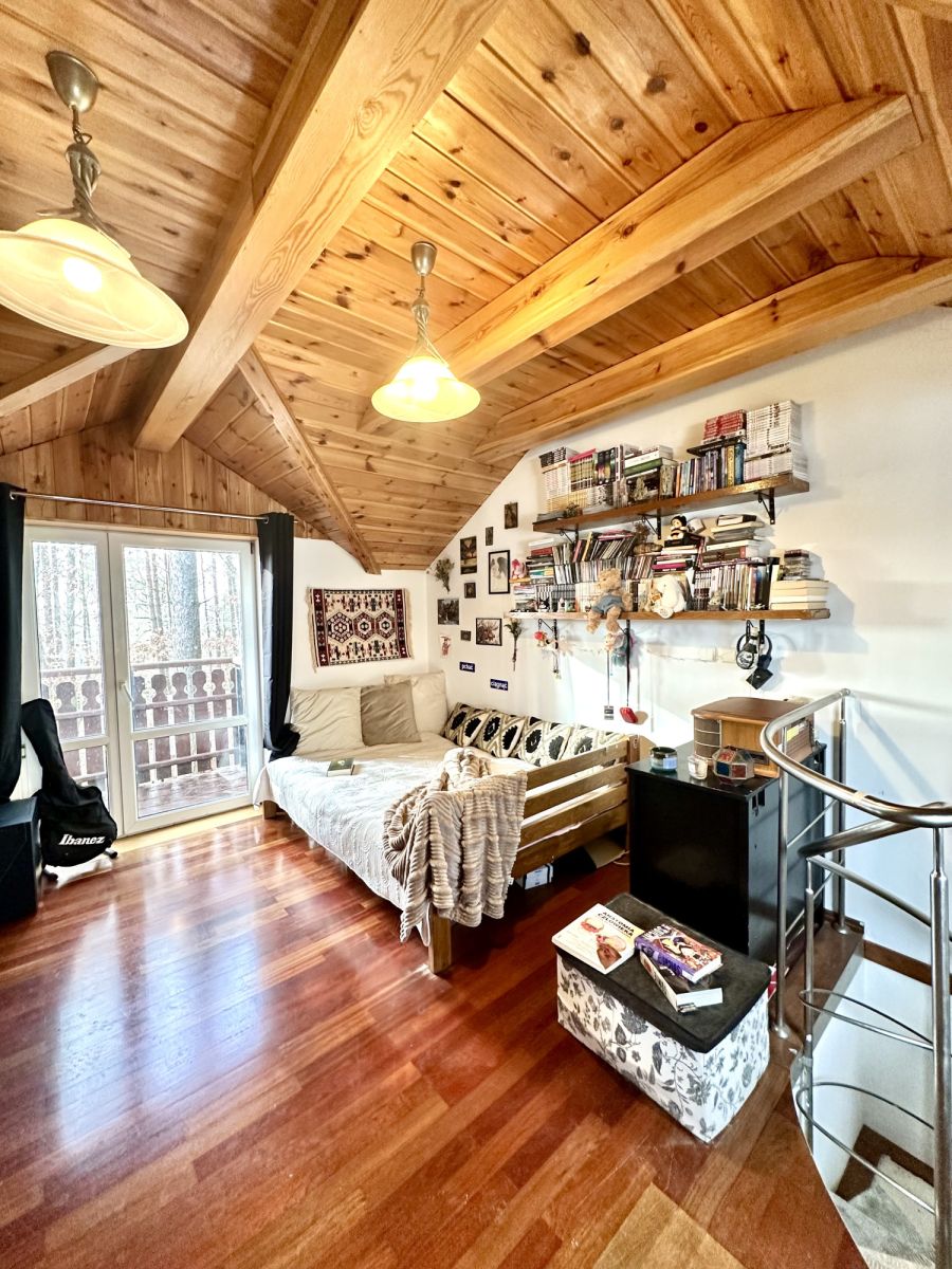 Cały dom przeszedł remont w ciągu ostatnich dwóch lat, obejmujący m.in. ocieplenie drewnianych ścian, wymianę okien i drzwi, instalację klimatyzatorów oraz montaż nowych wkładów kominkowych. Nowoczesne rozwiązania, jak klimatyzacja z funkcją grzania i chłodzenia, zapewniają komfort przez cały rok. Na parterze znajduje się także 30-metrowy drewniany taras, który otacza dom, tworząc idealne miejsce do wypoczynku na świeżym powietrzu. Ogrzewanie budynku jest elektryczne, a dla miłośników tradycyjnych rozwiązań, w domu znajduje się piec typu "koza" oraz dwa kominki, które dodatkowo ocieplają wnętrza.