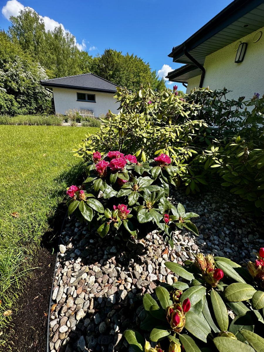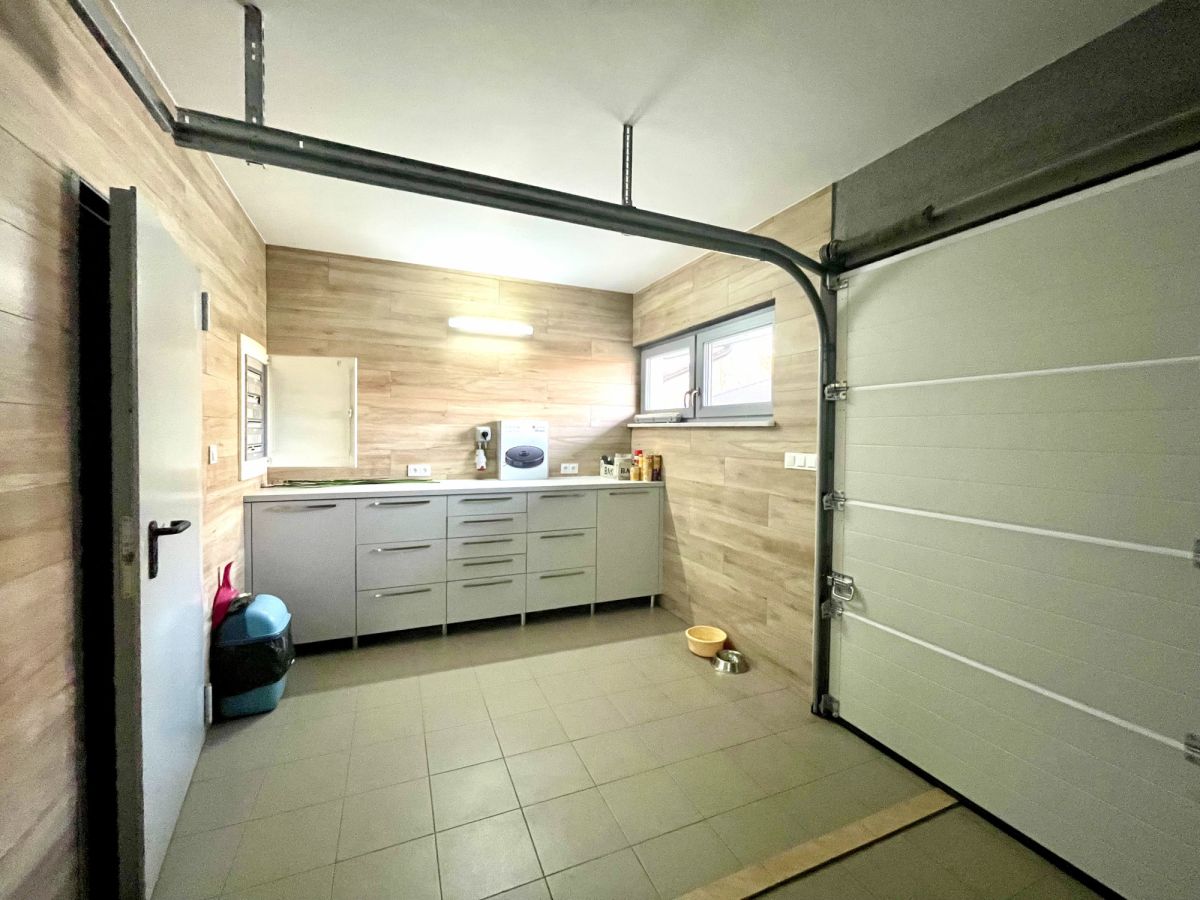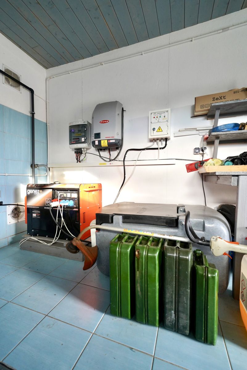 Na terenie posiadłości znajduje się dom wolnostojący wybudowany w 2020 roku o powierzchni 220 m2 z garażem (28,1 m2) oraz murowany budynek z 2 miejscami garażowymi na duże samochody (2 niezależne bramy na pilota) oraz pomieszczeniem technicznym, w którym obecni właściciele mają centrum dowodzenia domową elektroniką m.in. agregatem prądotwórczym, falownikiem do paneli fotowoltaicznych oraz odżelaziaczem wody (tak aby dom był przygotowany na pełną wystarczalność cieplną i energetyczną). Kolejnych kilka aut może być zaparkowanych na wyłożonym kostką brukową dużym reprezentacyjnym podjeździe.