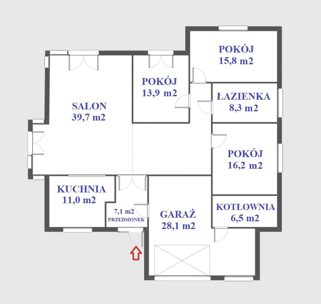 W tej części domu znajduje się również łazienka dla domowników ( 8,3 m2). W przestronnej łazience z oknem znalazło się miejsce na wannę z hydromasażem, 2 umywalki oraz długi ciąg szafek, który pozwoli na łatwe zagospodarowanie powierzchni. Na parterze znajdują się sypialnia główna (15.8m2) oraz kolejne dwa pokoje 13.9 m2 i 16.2 m2.