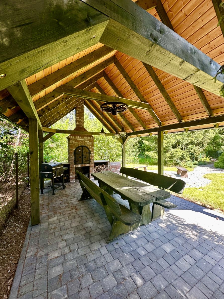 Altana z grillem, wędzarnią i stołami biesiadnymi