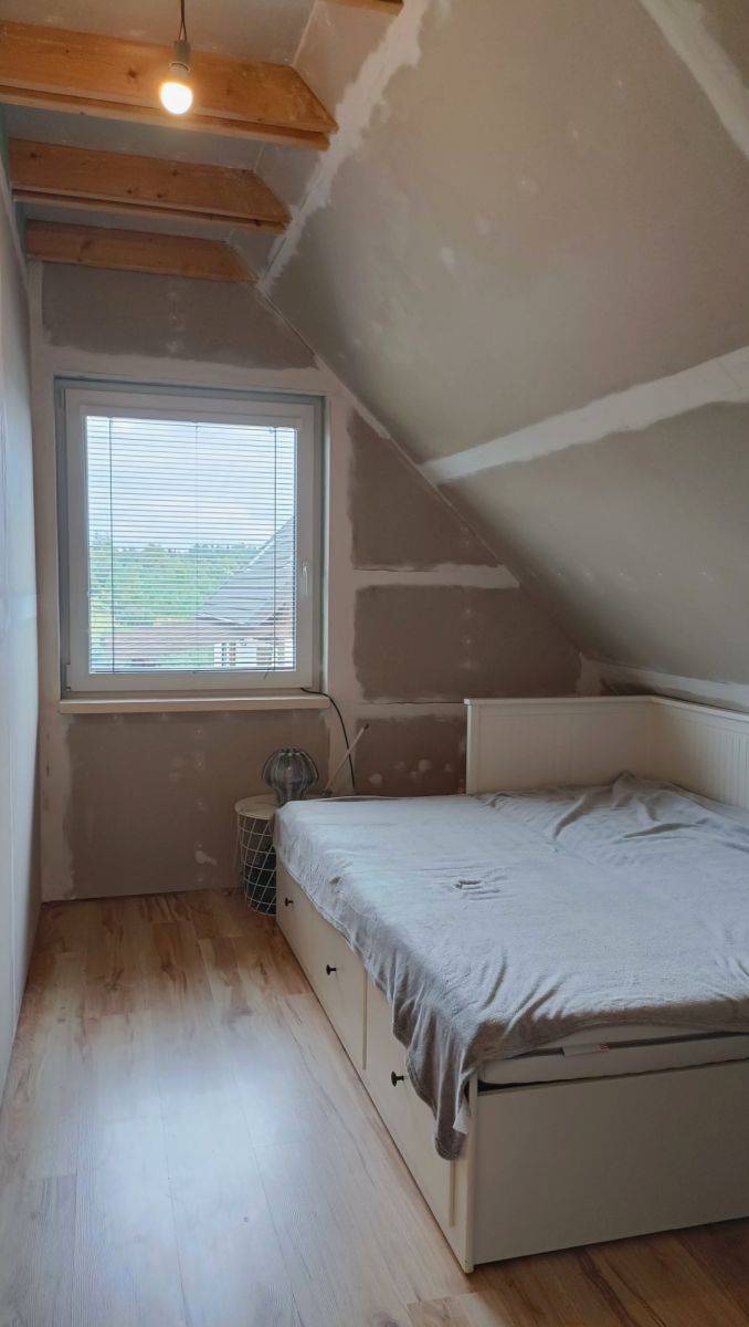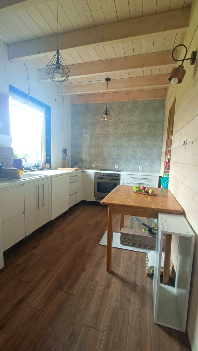 Dom został wybudowany z drewna i oddany do użytku w 2022 roku. Obiekt jest w stanie częściowo do wykończenia, co daje nowemu właścicielowi swobodę aranżacji wnętrz według własnych upodobań.