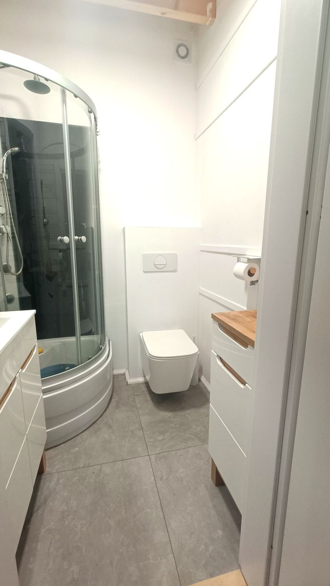 Dodatkowym atutem jest zamknięty taras o powierzchni 24 m², który umożliwia komfortowy wypoczynek nawet w chłodniejsze dni, np. późną jesienią.
