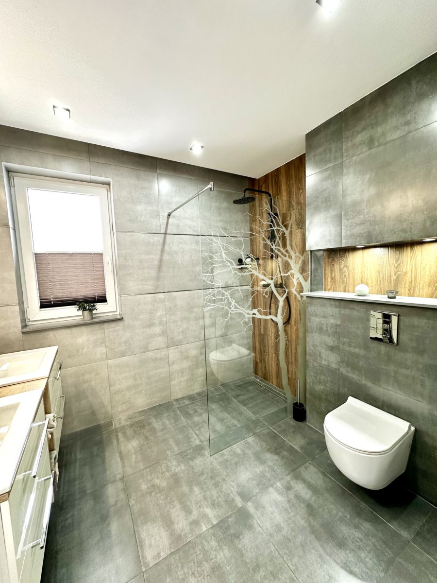Funkcjonalna i stylowa łazienka z oknem, wyposażona w: