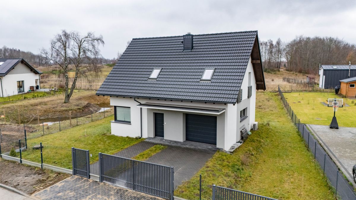 Budynek wykonany został w nowoczesnej technologii z pompą ciepła, z dbałością o jakość materiałów i funkcjonalny rozkład.