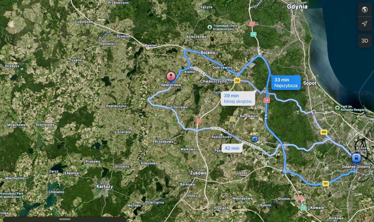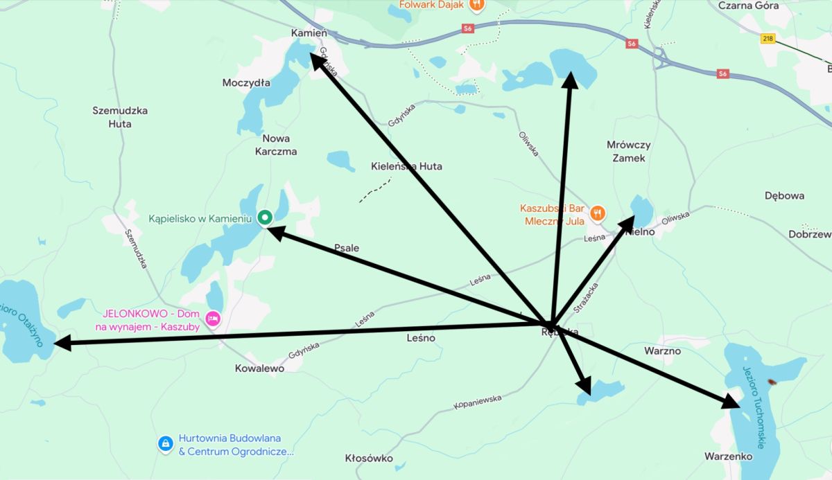 W pobliskim Kielnie (2 km) znajduje się Centrum Sportowe Kielno z basenem, szkoła, przedszkole oraz zaplecze handlowe i usługowe, co zapewnia wygodę codziennego życia. Taka lokalizacja łączy bliskość natury z pełną infrastrukturą, co czyni ją idealnym miejscem na budowę domu. Do Gdyni i Sopotu dojedziesz w pół godziny, do Gdańska w 50 minut.