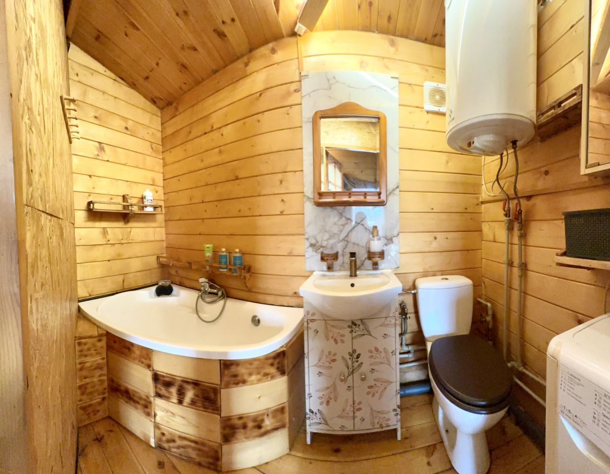 Przemyślane wnętrze domku oferuje: