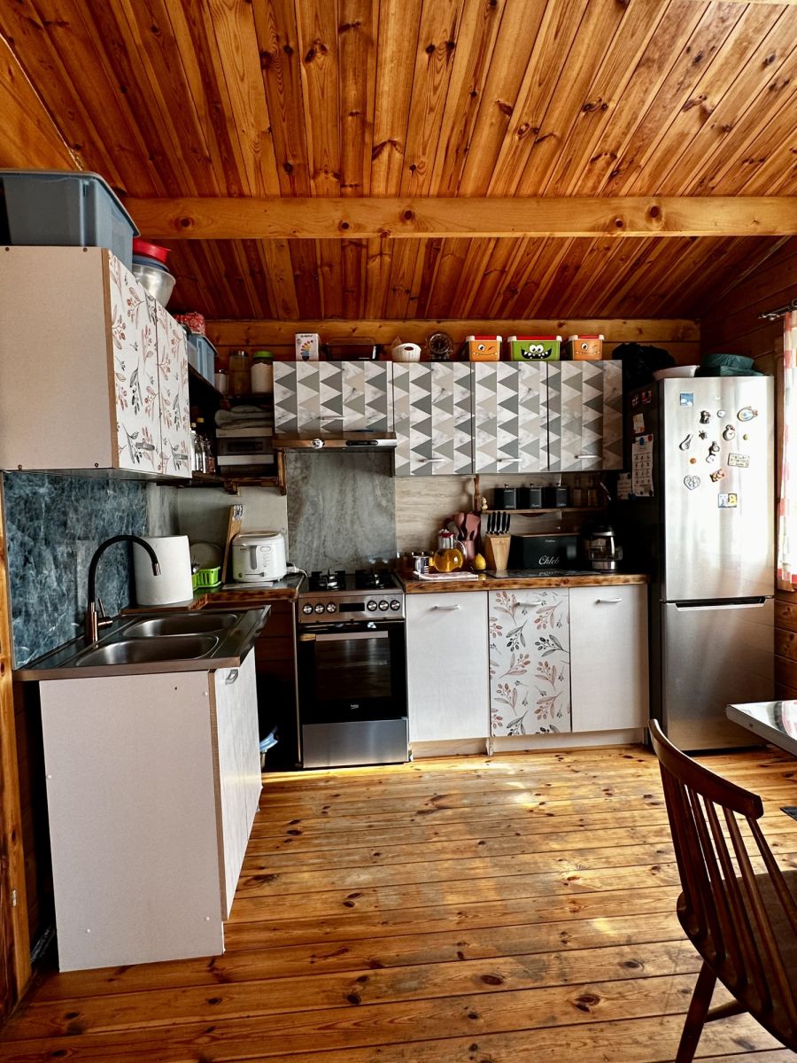 Kuchnia w pełni wyposażona (kuchenka gazowa, lodówka, szafki, oświetlenie LED)