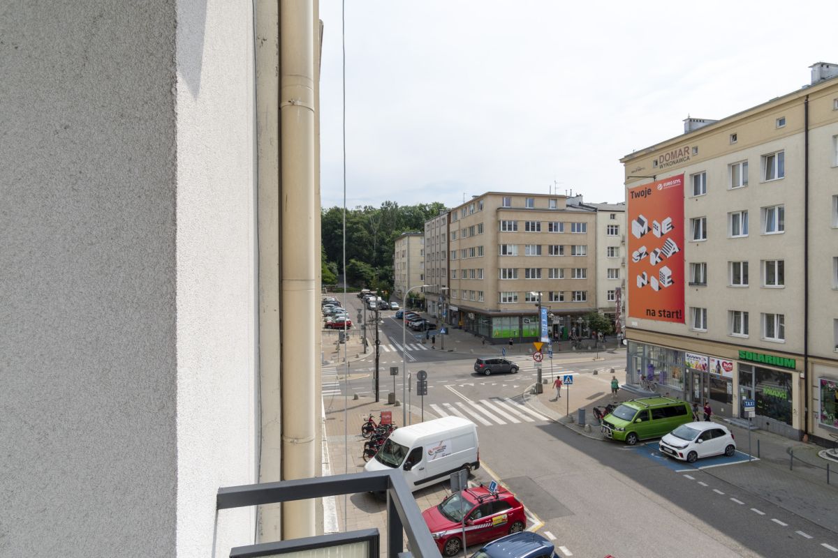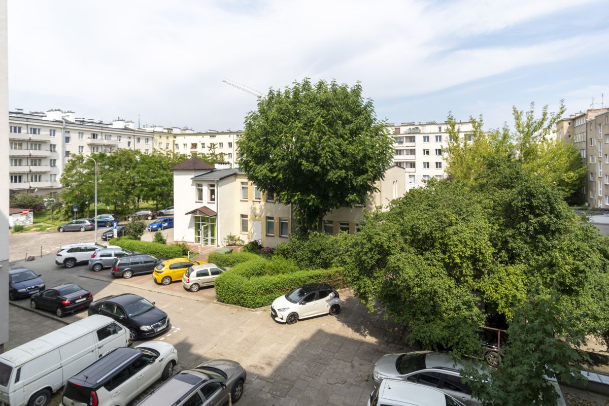 - dwóch samodzielnych pokoi: dzienny z niewielkim balkonem skierowanym na stronę południową (ul. Żwirki i Wigury) oraz sypialni z oknem skierowanym na północ (podwórko).