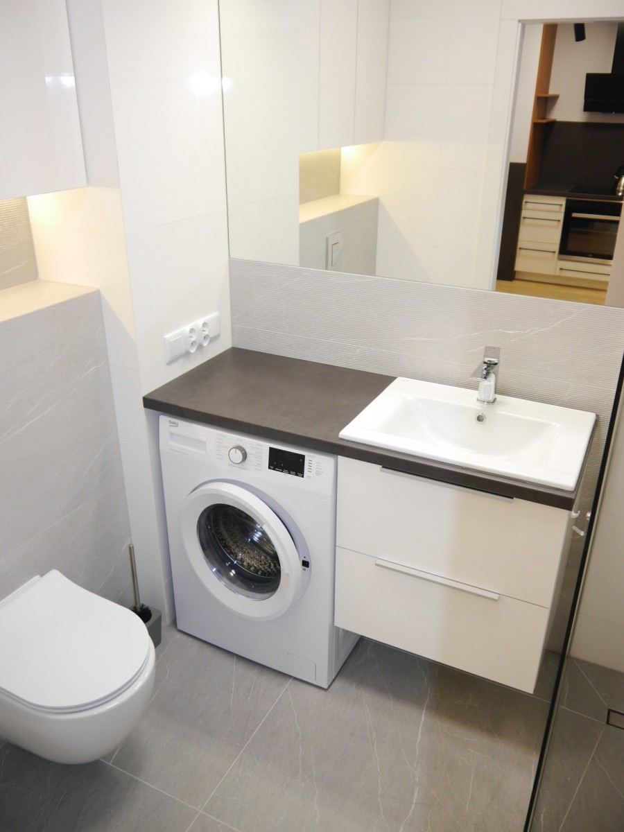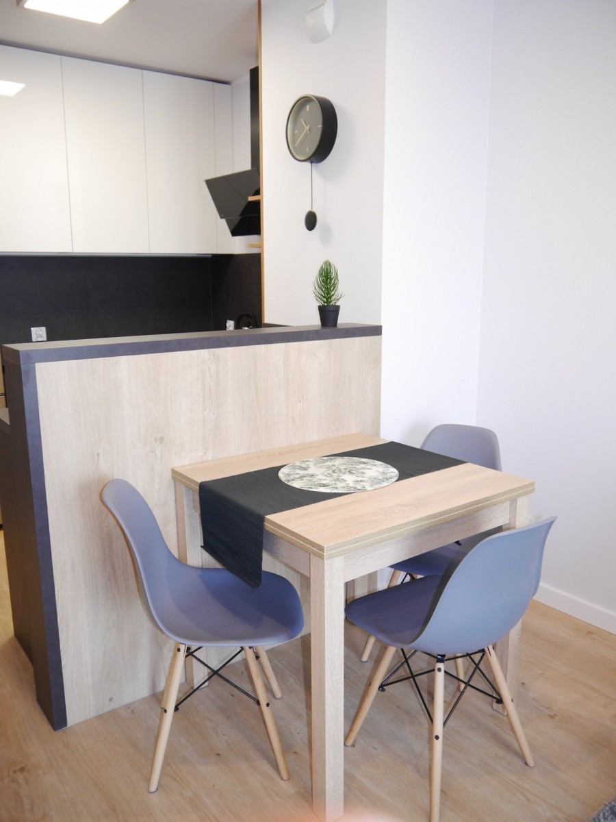 Styl: stonowana kolorystyka, przemyślane wykorzystanie przestrzeni.