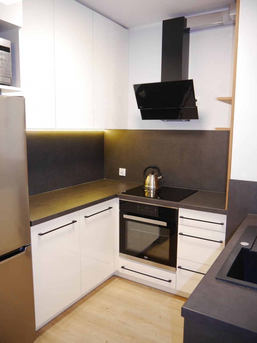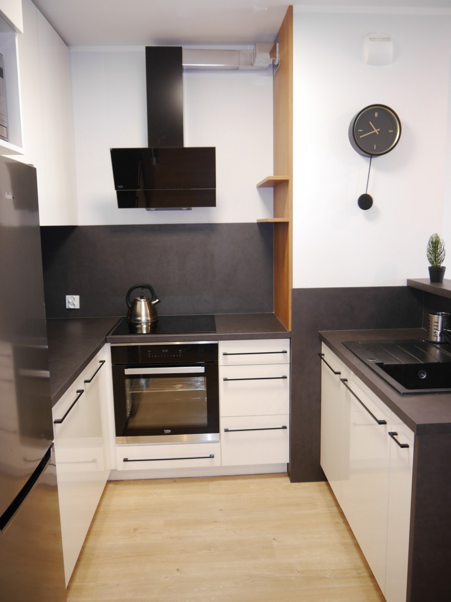 Kuchnia w pełni wyposażona - płyta indukcyjna, piekarnik, mikrofalówka, zmywarka, podstawowe naczynia