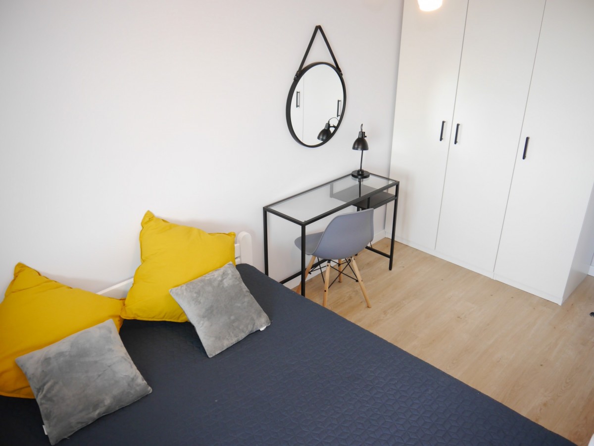 Sypialnia: wygodne duże łóżko, pojemna szafa, biurko do pracy