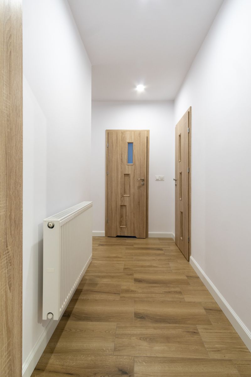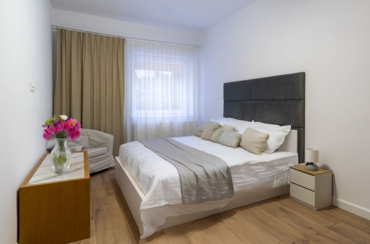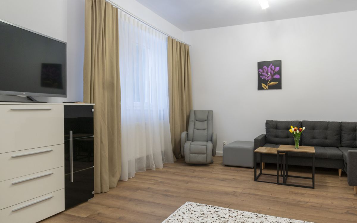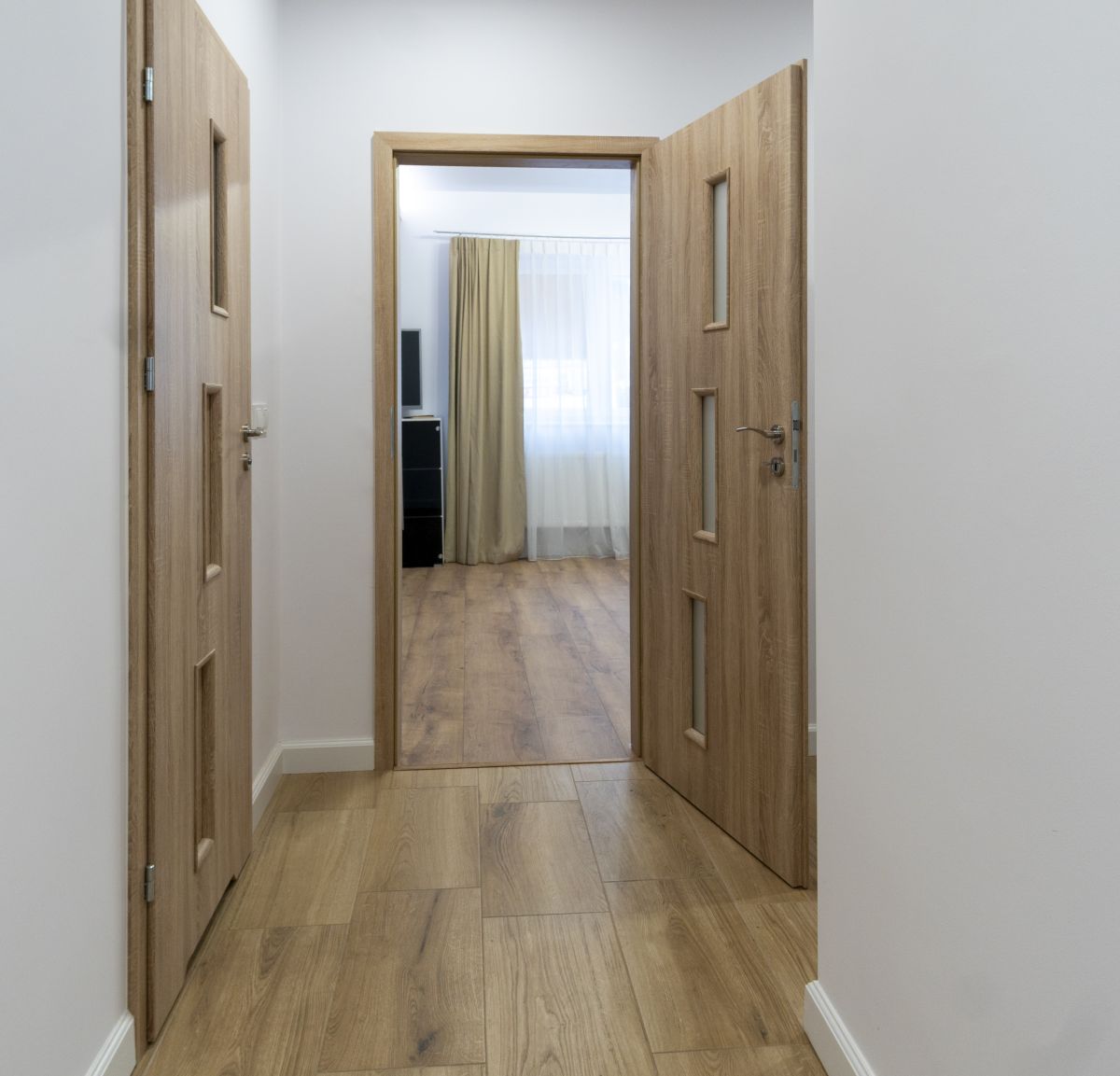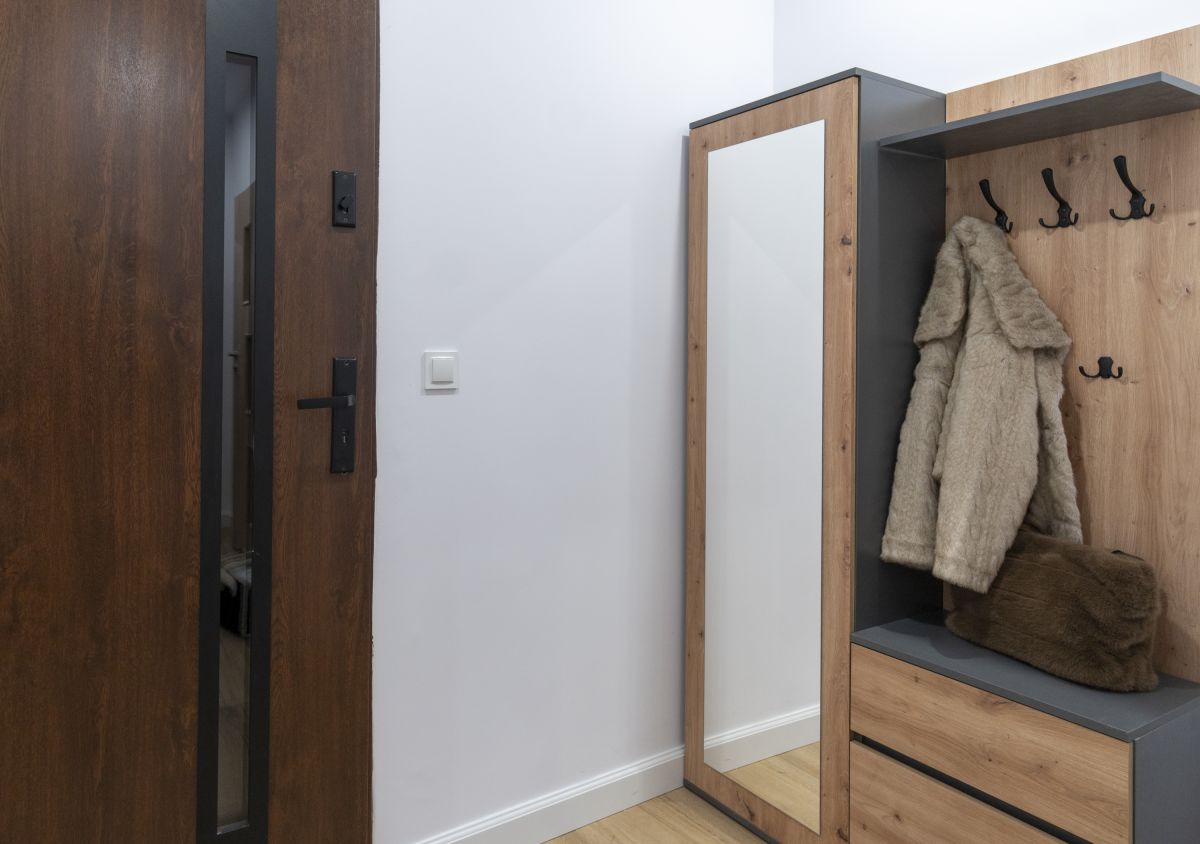 Mieszkanie znajduje się na parterze i jest bezpośrednio po generalnym remoncie — nikt wcześniej w nim nie mieszkał. Całość została urządzona w nowoczesnym, neutralnym stylu.